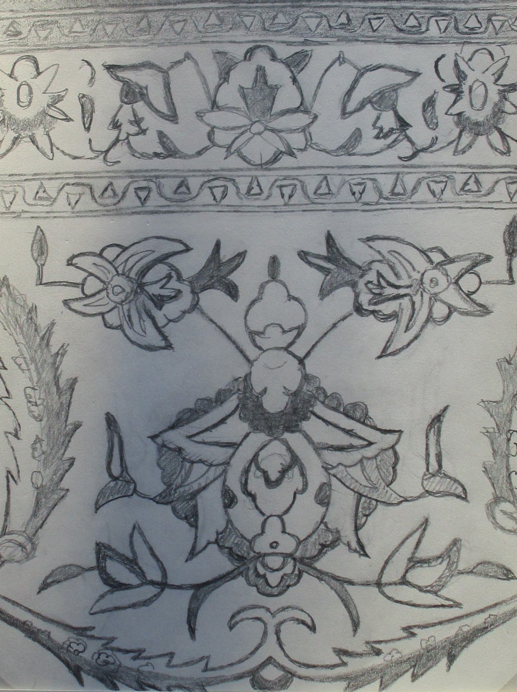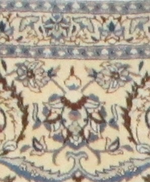 Zeichnung und Original. Nain Teppich ‚Habbibian‘ Werstatt (2,40*1,60 m ) 1 Mio Knoten/m^3 ; Ausschnitt des umlaufenden Musters ca 20 * 15 cm.