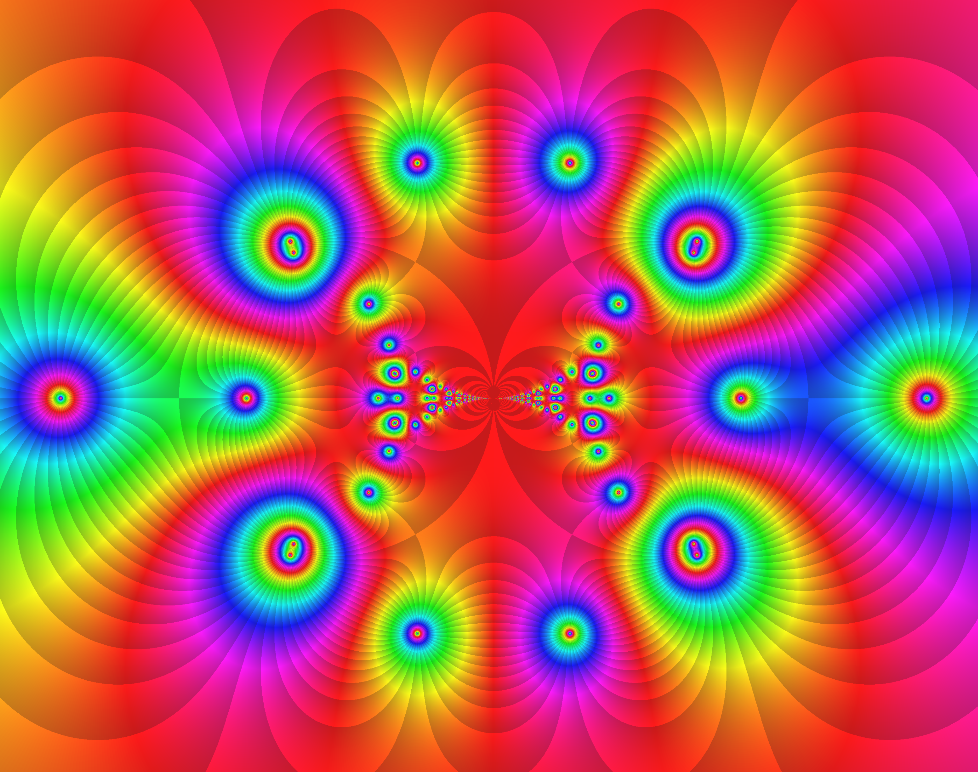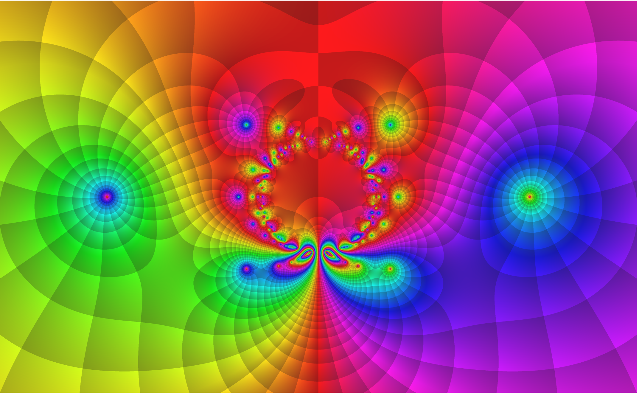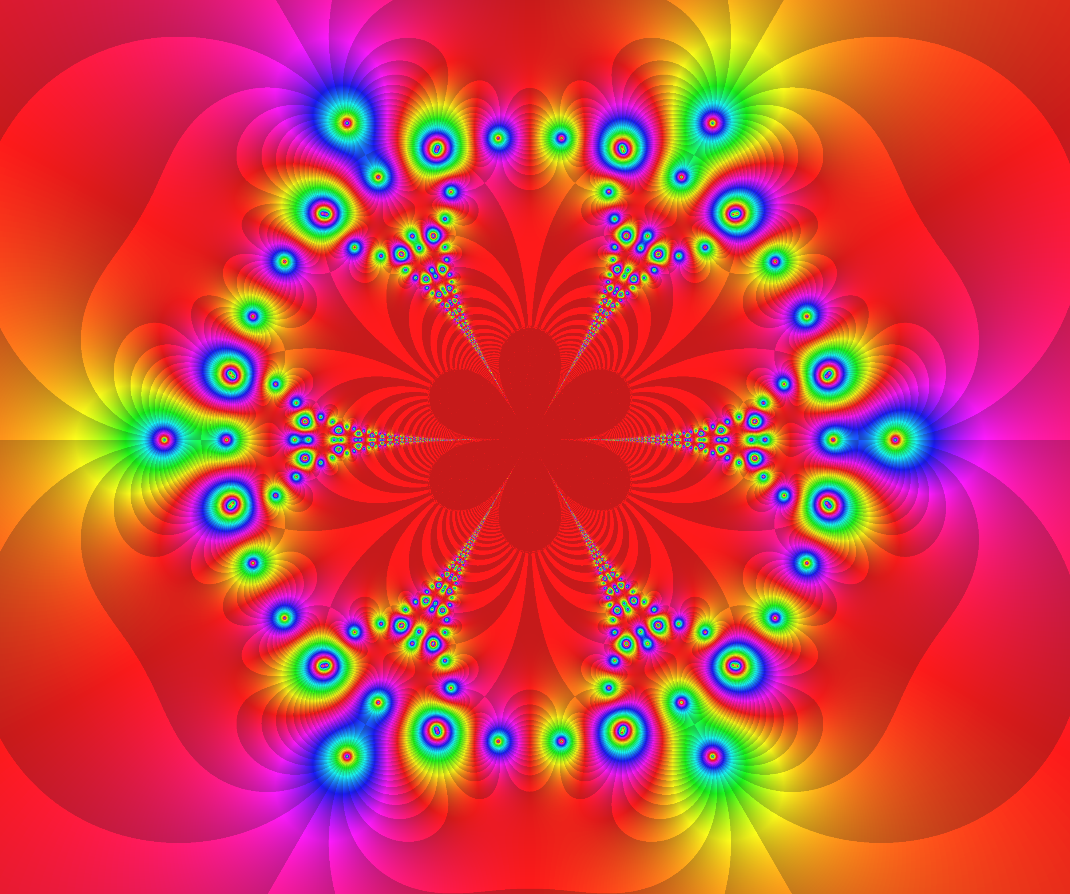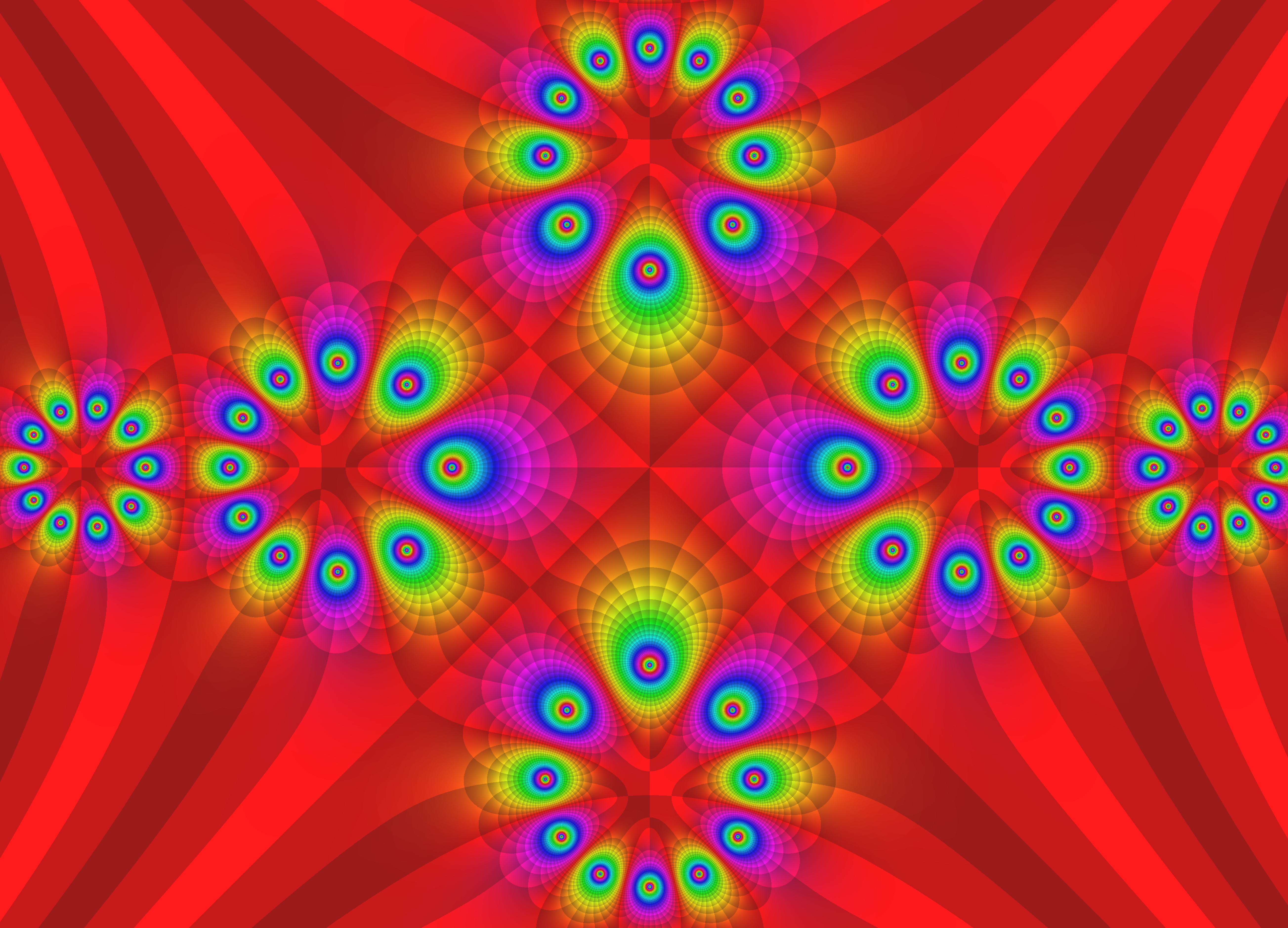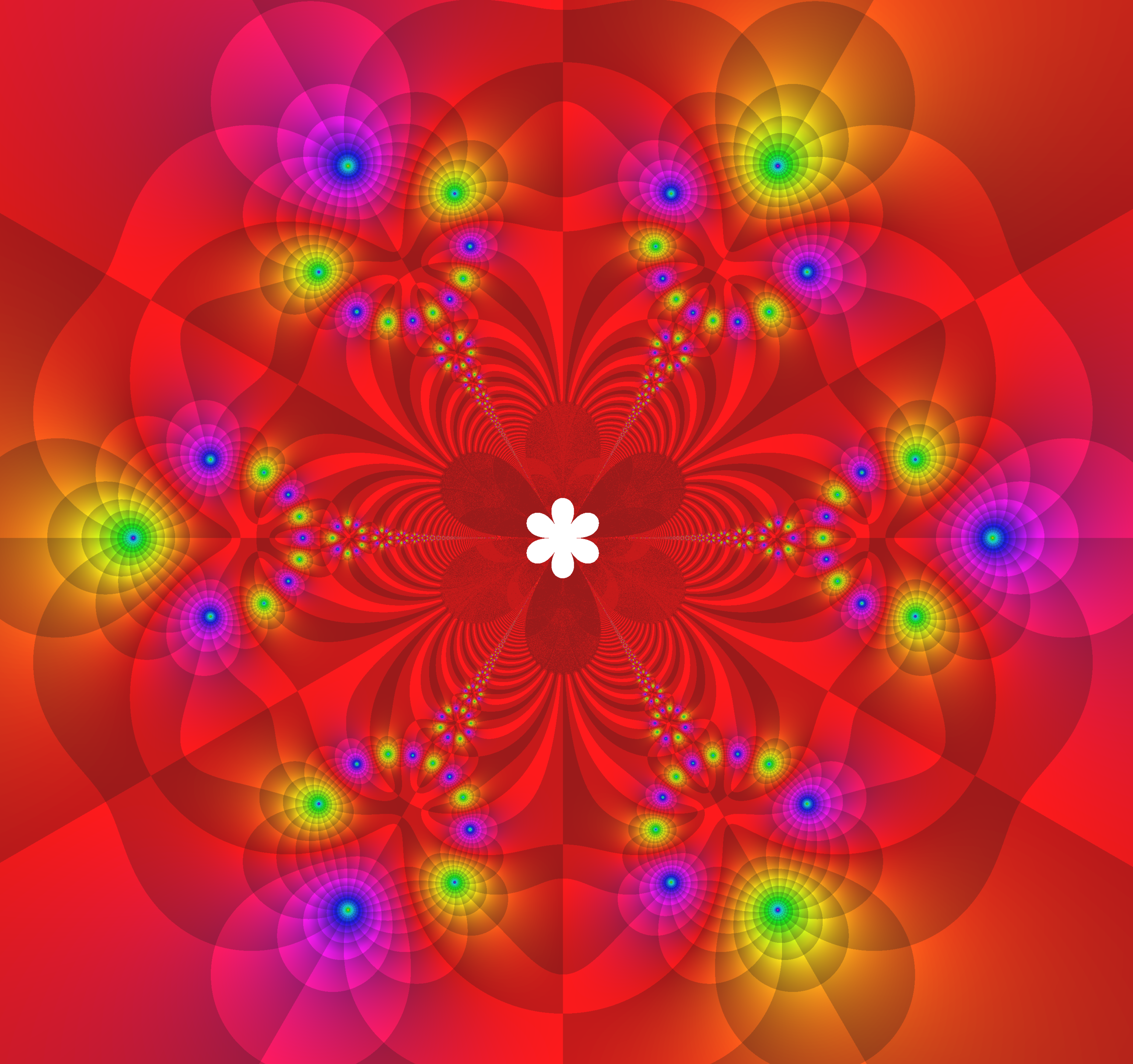 Abb.: 5-3 – 5 ___ f = ( cos(z ^3 + phi^k) / cos(z ^3 – phi^k))), ^ i , phi =exp(2pi*i/6) , k=0:5